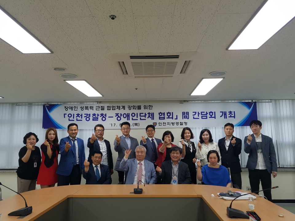 인천경찰청-장애인단체 間 간담회 작성자 관리자 작성일 2017-05-22 첨부파일 KakaoTalk_20170522_090615447.jpg (0byte) KakaoTalk_20170522_090632351.jpg (0byte) 사)인천장애인단체총연합회는 5월 18일(목) 장애인 성폭력 근절 협업체계 강화를 위한 인천지방경찰청과 장애인단체 間 간담회를 하였다. 이전글 2017년도 이사회 및 임시총회 다음글 회원단체 동정 -제 18회 시각장애인 재활대회 목록보기