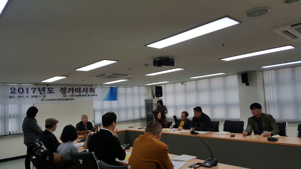 2017년 1월 20일(금) 2017년도 제1차 정기이사회를 개최하였다. 각 단체의 무궁한 발전을 위하여 사)인천광역시장애인단체총연합회 정영기 회장을 비롯한 각 단체 임원들이 참석하여 자리를 빛냈다.