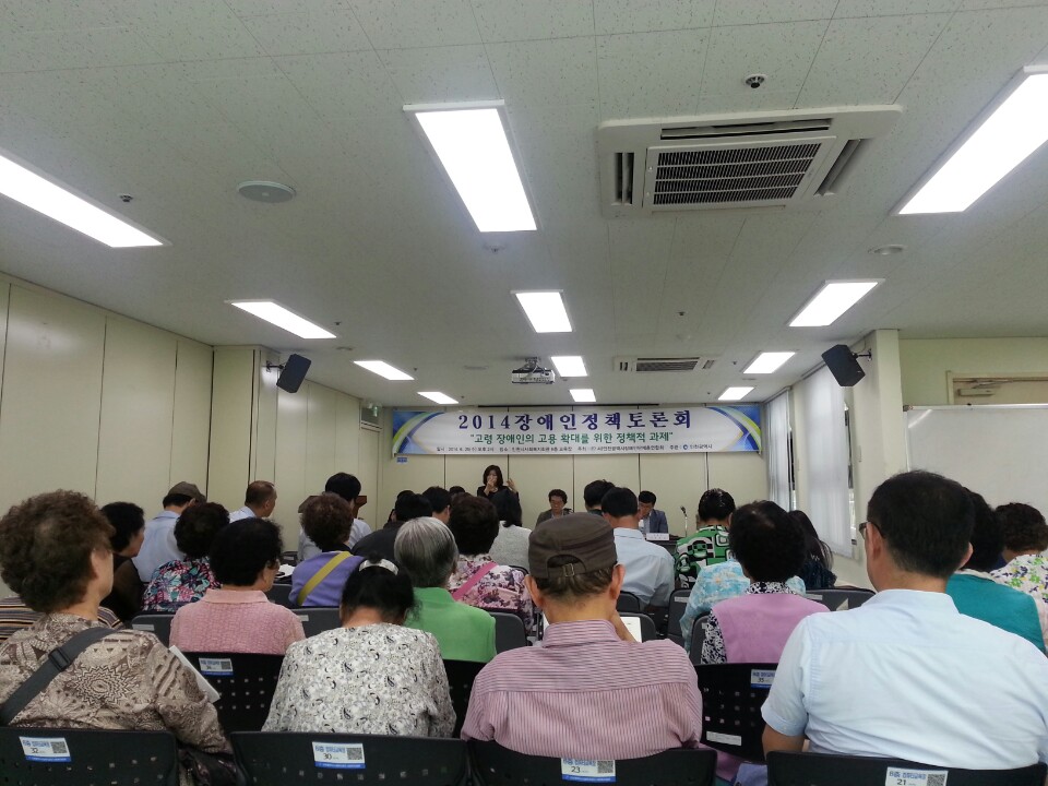 사)인천광역시장애인단체총연합회(회장 정영기)는 6월 25일(수) 오후 2시 인천시사회복지회관 6층 교육장에서 ‘고령 장애인의 고용 확대를 위한 정책적 과제’ 를 주제로 토론회를 개최하였다. 100여 명이 참석하였고 좌장으로는 서울시립대학교 사회복지학과 교수 이성규, 발제로는 한국장애인고용공단 인천지사 부장 심창우, 인천광역시노인인력개발센터 사무국장 최혜욱, 토론자로는 인천대학교 사회복지학과 교수 전용호, 노틀담복지관 사무국장 이은기가 참석하였다.